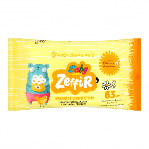 Серветки вологі для дітей з екстрактом ромашки Zeffir 63шт