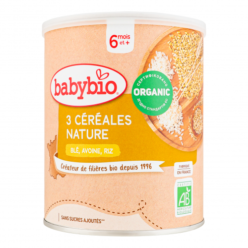 Каша для дітей від 6міс злакова з пшеницею, вівсом та рисом Organic Babybio з/б 220г