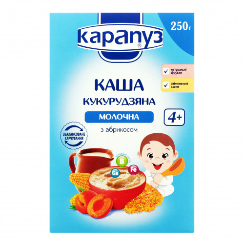 Каша молочна кукурудзяна з абрикосом для дітей з 4міс Карапуз к/у 250г