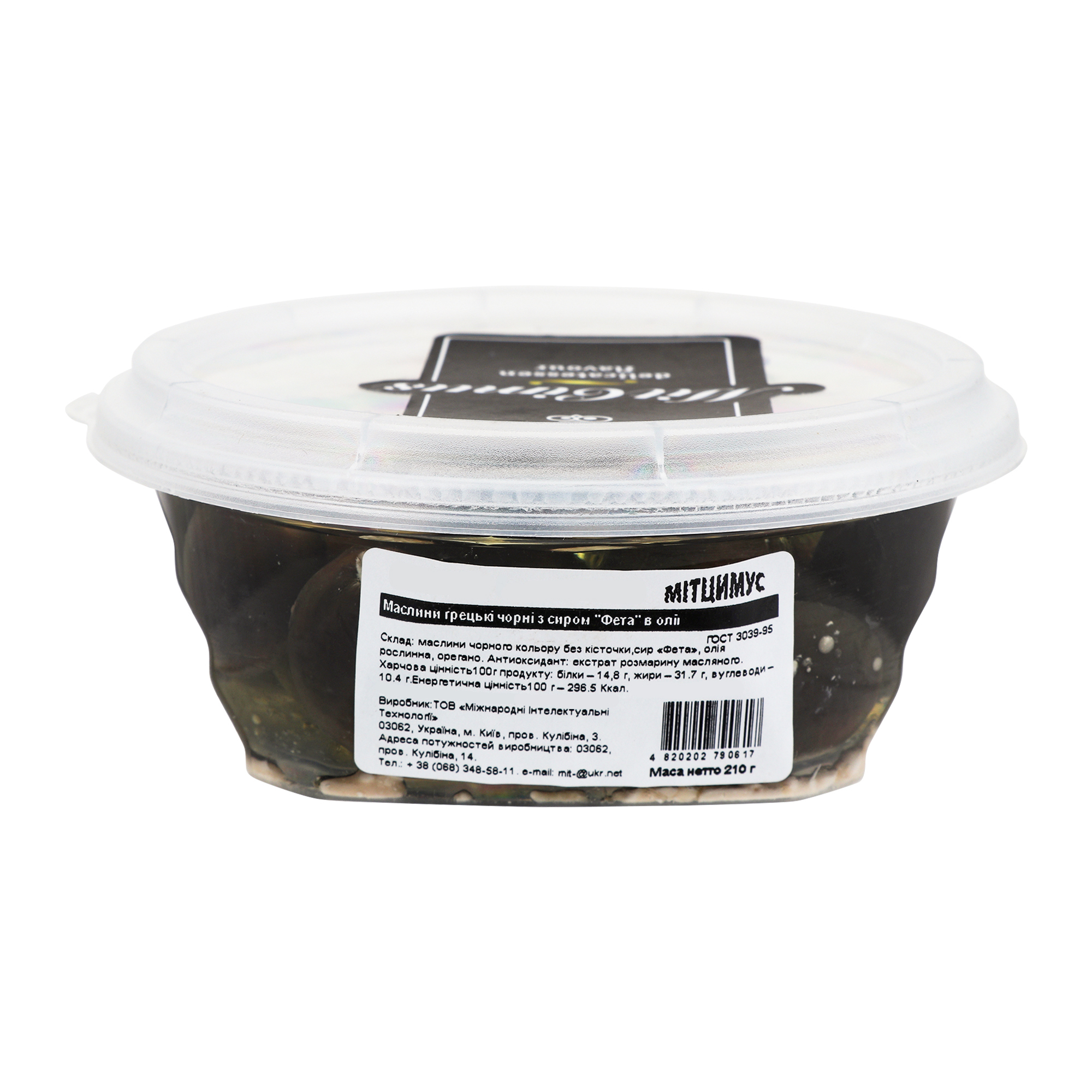 This page displays as much information as possible about Маслини чорні грецькі з сиром Фета в олії MitCimus ст 230г.