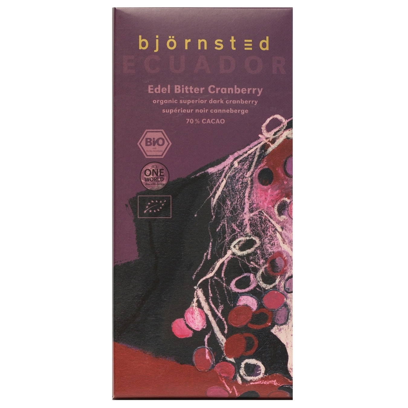 Шоколад Bjornsted органічний чорний з журавлиною 70% 100г
